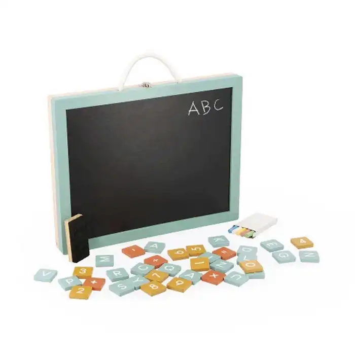With this 4-in-1 case, kids can enjoy a host of fun learning activities, from age 3 upwards. Ideal for occupying a long journey or simply for screen-free entertainment, this activity toy is practical and compact: so you can take it anywhere! 4 activities come together in this pretty wooden case: first, 1 magic slate with stylus. Simply slide the handle from left to right to magically erase the drawing! Next, 1 white magnetic slate with 42 magnets (27 letters, 10 numbers and 5 signs) to learn the alphabet, write your first words or perform your first operations. With this, you'll also find 1 black slate, complete with chalk box and brush. Finally, 1 white side ideal for writing and drawing with a dry-erase marker (not supplied). So you see: on each side of the case, your child has a different surface for expression, complete with accessories, all of which store easily inside the toy. With its cotton handle, this magic board is easy for little ones to carry around, and they can use it on their laps or wherever their inspiration takes them. Not only do they develop their creativity and imagination, they also learn the alphabet and how to write! No need to choose between a magnetic board or a blackboard: it's all there! This educational toy is a practical asset for homework. In its 37x29 cm format, this 4-in-1 case is made from FSC™-certified wood from sustainably managed forests.