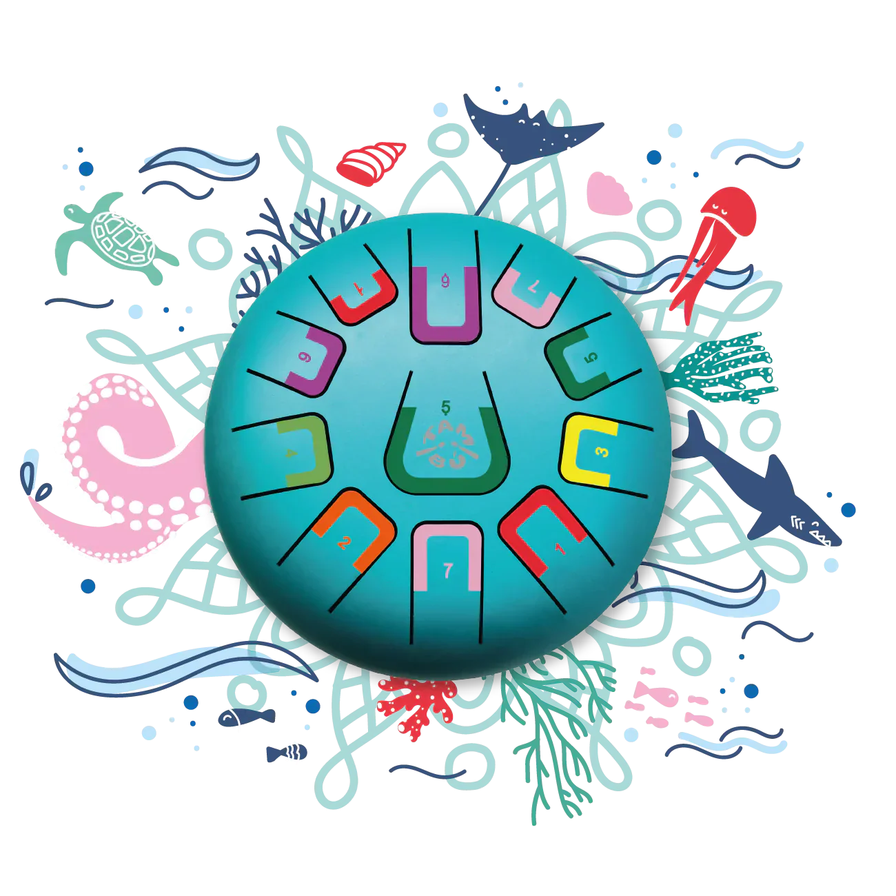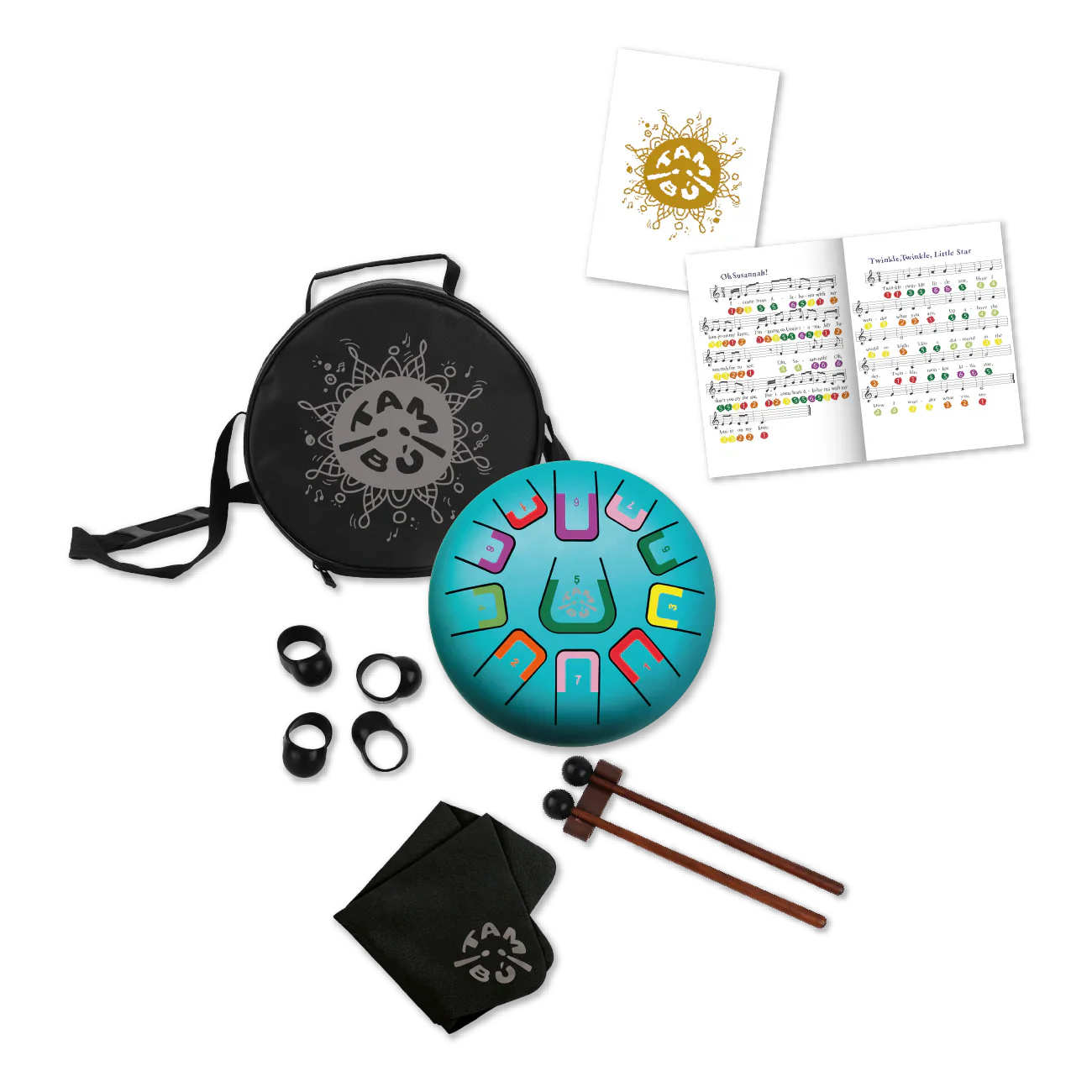 Tambú is an innovative tongue drum designed for all ages. It allows you to create harmonious melodies from the very first moment, with no prior musical knowledge required. Its color and number coding system makes learning intuitive and fun.