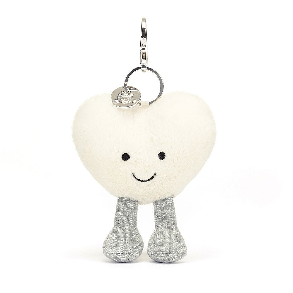 Wherever you go, wear your heart on your bag! The Amuseables Cream Heart Bag Charm is a gorgeous pop of soft cream with silver glittery cord boots. With a silver claw clip and Jellycat tag, this bright-eyed pal suits any purse or backpack. A little love goes a long, long way.