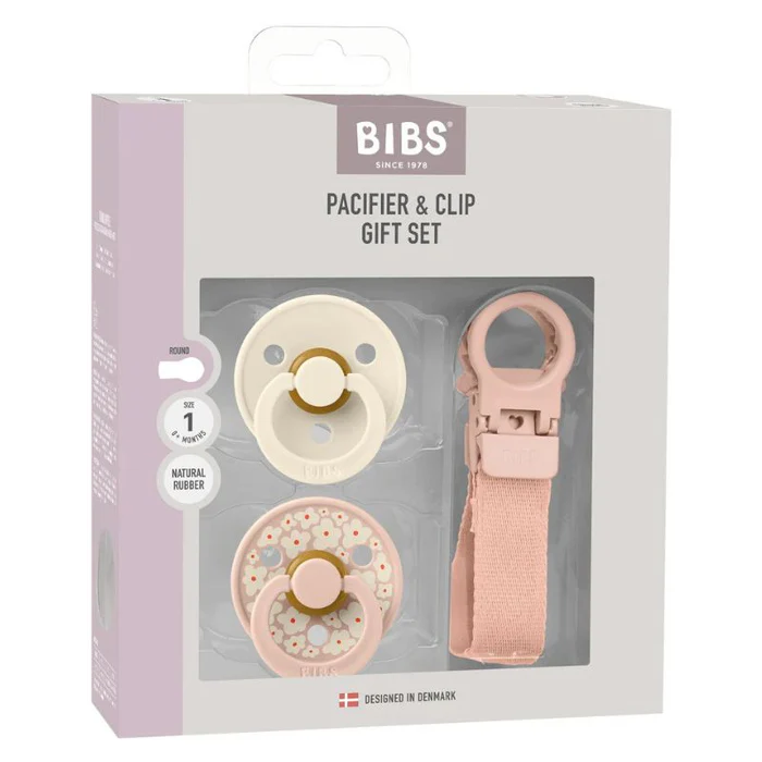 BIBS Colour Pacifier & Loop Clip Gift Set Latex Size 1 Blush