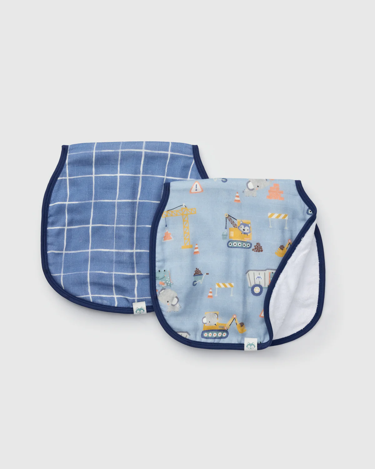 Soft, snuggly, and ready for any mess. Our two-piece burp cloth set is made from buttery-soft muslin with a super absorbent terry cloth back, perfect for catching spit-up, dribbles, and surprise sneezes.