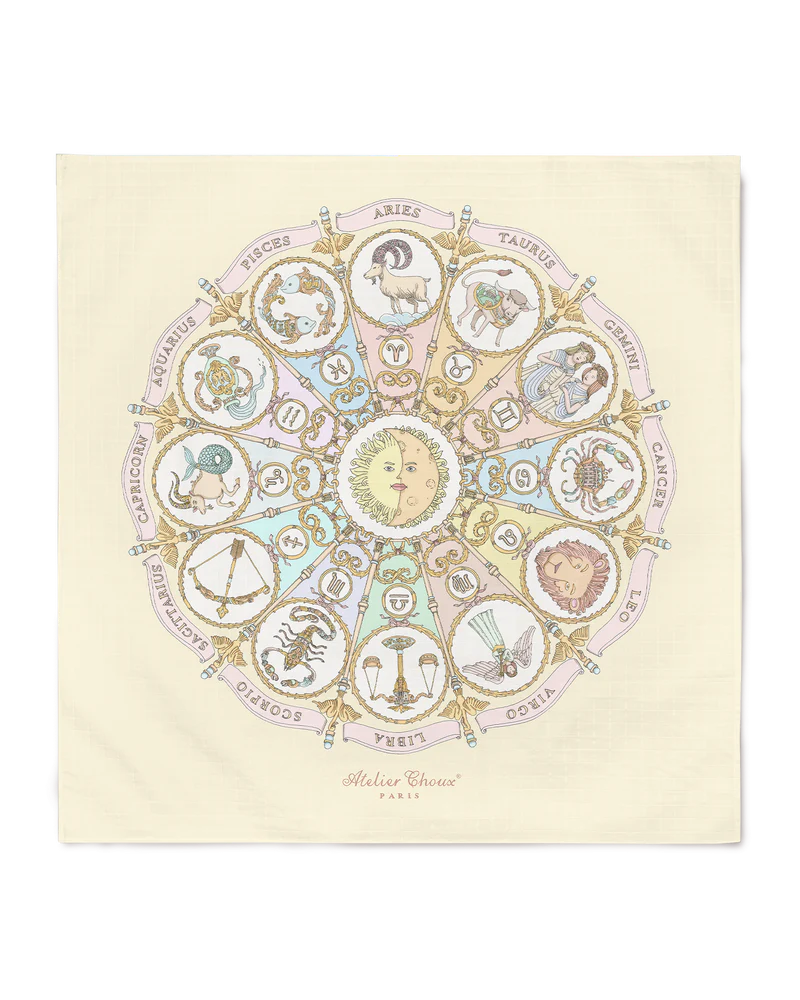 Each design features whimsical illustrations by Mattias Adolfsson, a Swedish artist known for his intricate, imaginative style. This exclusive print draws inspiration from astrological symbolism — offering a peaceful, Parisian twist on the stars.