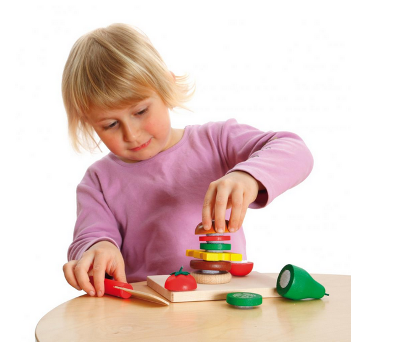 This lovely play food is stained with water-based, non-toxic lacquers in rich warm colours that allows the wood grain to show through and won't chip off. This set is great for developing fine motor skills and lets the child decide which fruits to chop and prepare.