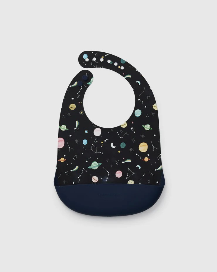 Our silicone bibs are buttery soft, waterproof, and stain-resistant. It is easy to clean; simply wipe down for a quick cleaning or put it in the top rack dishwasher for a deep clean. It features a wide catch-all pouch that sits below a high chair tray – perfect for collecting food, crumbs, and spills. Reinforced buttonholes for a durable and adjustable fit for long-lasting wear, suitable for ages 3 - 36 months. This handy bib is available in various modern colors and fresh designs to make mealtime fun and enjoyable.