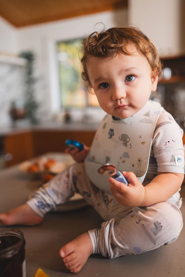 Our silicone bibs are buttery soft, waterproof, and stain-resistant. It is easy to clean; simply wipe down for a quick cleaning or put it in the top rack dishwasher for a deep clean. It features a wide catch-all pouch that sits below a high chair tray – perfect for collecting food, crumbs, and spills. Reinforced buttonholes for a durable and adjustable fit for long-lasting wear, suitable for ages 3 - 36 months. This handy bib is available in various modern colors and fresh designs to make mealtime fun and enjoyable.