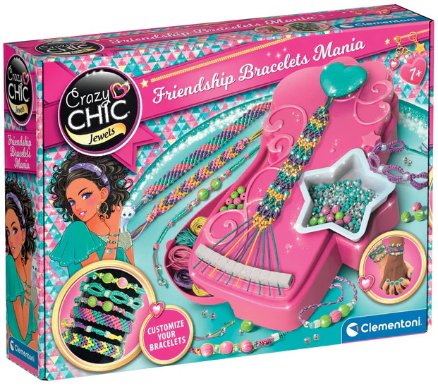 The Crazy Chic Bracelets kit is an exciting creative set that allows children to make trendy, personalized jewelry and accessories, opening the door to their creativity and unique style. Focused on friendship bracelets, this kit offers a wide selection of beads in various colors and finishes, onto which letters or icons can be engraved using a special tool, making each creation unique and meaningful. The contents include a work base, a variety of beads to decorate, and super glamorous colored cords, allowing children to make a whole range of personalized jewelry and accessories for themselves or to share with friends. These DIY jewelry pieces feature vibrant colors that allow young artists to express their creativity and unique style, encouraging individuality and imagination.