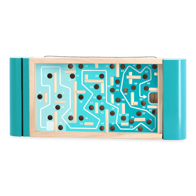 Little holes, little holes, and even more little holes! The abilirinth, a contraction of "ability" and "labyrinth", is a two-in-one game: First, by operating the 2 handles, you have to manage in 3 pathways of increasing difficulty by directing the ball between the holes without making it drop. Second, there is another maze game that you have to play by directing the marble only by tilting the Abilrinth in all directions. At first, it's quite simple, but will you manage to get to the end? Measures approximately 32.5 x 15 x 4 cm. Box measures approximately 33 x 16 x 5 cm. WARNING SMALL PARTS: Safety rated for ages 5+.
