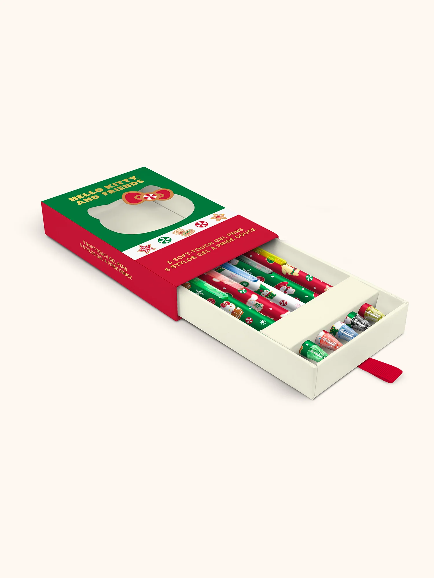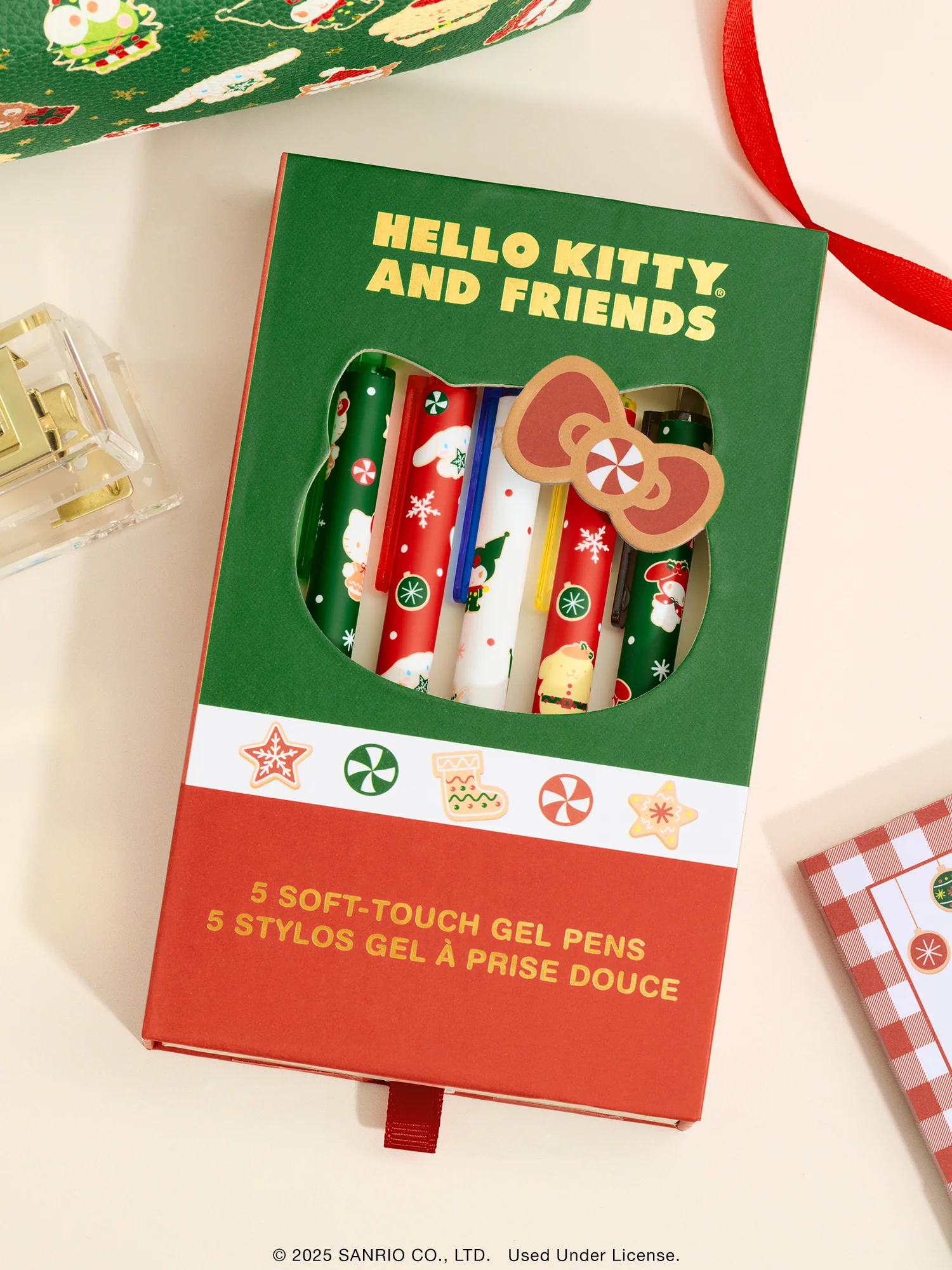 Unleash your imagination with these festive Hello Kitty® and Friends gel pens! This set features five cute, coordinating pens, each with an adorable holiday design on the barrel. The pens feature a 0.7 mm tip for creating medium-thick lines and have smooth-flowing ink in five different colors: green, yellow, blue, red, and black. The soft-touch barrels ensure an extra comfortable grip whether you’re taking notes, making lists, doodling, or planning your schedule. Plus, they make the perfect holiday gift for students, coworkers, or any Hello Kitty fan!