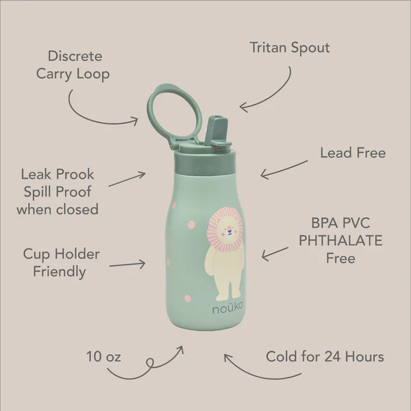 Designed with both style and functionality in mind, the noüka Stainless Steel Drinking Bottle is a durable and modern hydration solution for toddlers and young children.