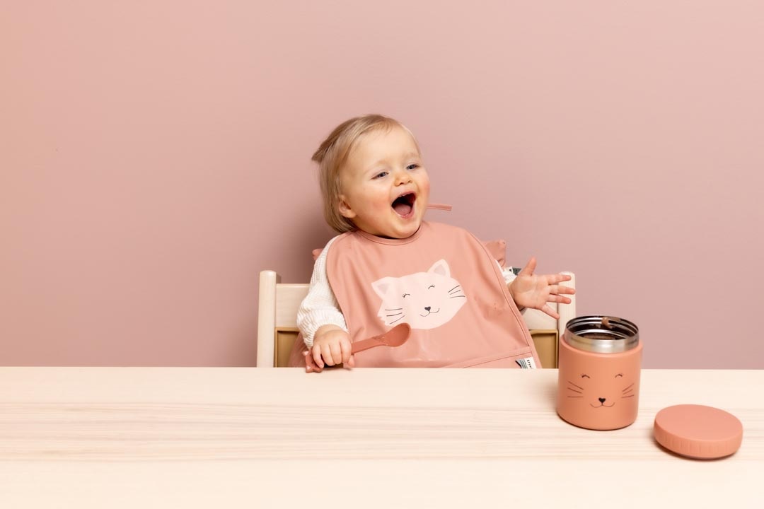 These are the ideal spoons to feed your child solid food. The spoons are also great for children who are learning to eat on their own. There is a stainless steel part integrated inside the spoon for sturdiness and to keep it straight. That is why this item is an exception to the rest of the silicone range and cannot be used in the microwave.